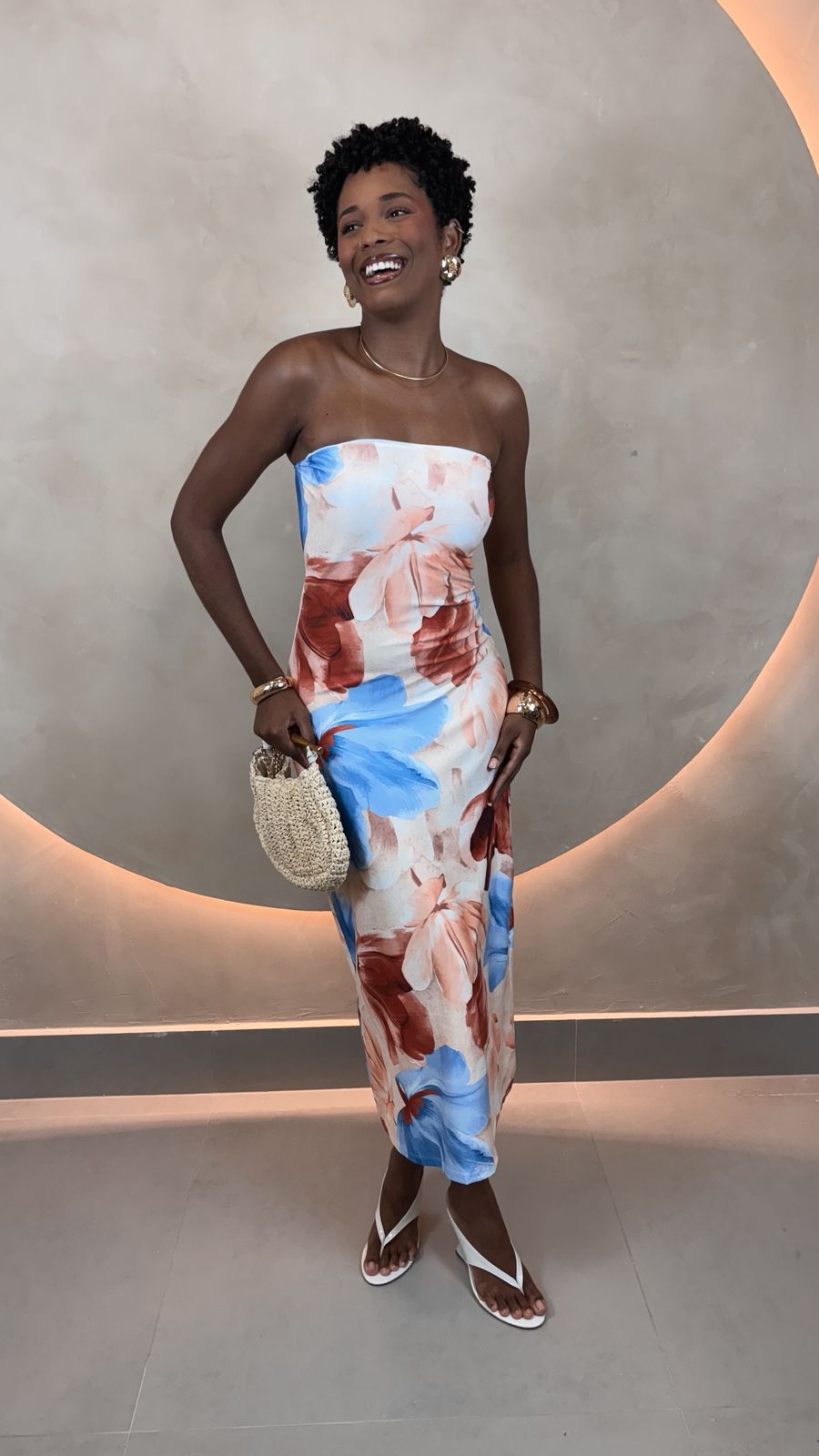 O modelo possui bojo e elástico na parte superior do busto, garantindo sustentação e ajuste confortável, enquanto valoriza a silhueta de forma natural. Seu comprimento longuete cria um visual moderno e versátil, ideal para diversas ocasiões.